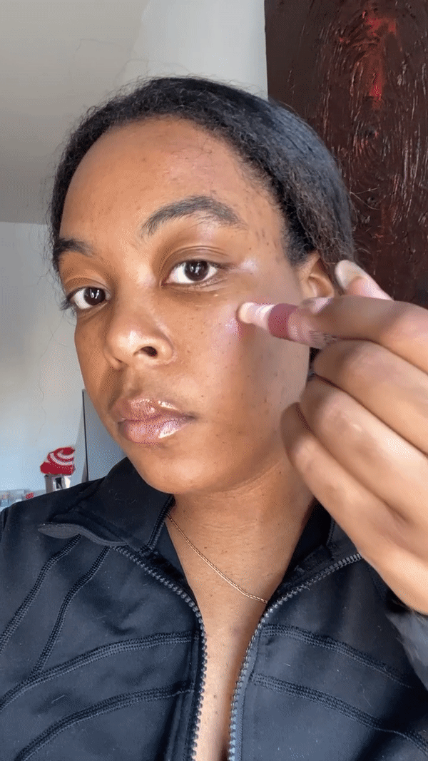 Le produit est intuitif à utiliser, ce qui est une autre raison pour laquelle je l’apprécie tant. Tout ce que vous avez à faire est de dévisser le couvercle, de presser le produit dans l’éponge et de le tapoter sur votre joue. J’ai utilisé la teinte « or liquide » pour l’enlumineur, « berry radiant » pour le fard à joues et « tan deep » pour le contour, et chaque teinte est apparue magnifiquement sur ma peau et s’est fondue dans la superbe finition brillante sur laquelle je salive . Malgré la finition brillante, ils étaient secs au toucher une fois le mélange terminé, je n’ai donc eu aucun problème de transfert lorsque j’ai touché mon visage.