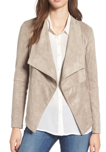Veste drapée en faux suède sur le devant, 109 $