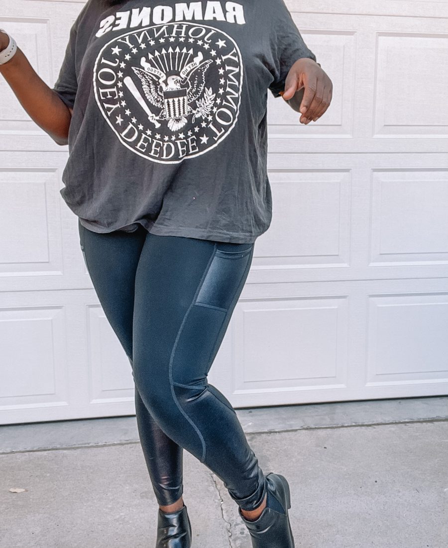 Pour un look plus habillé, je glisse mon col montant préféré dans le legging et j’ajoute des lunettes de soleil comme je l’ai fait ici. Les leggings Spanx sont parfaits pour lisser votre silhouette et vous donner confiance et tenue toute la journée.