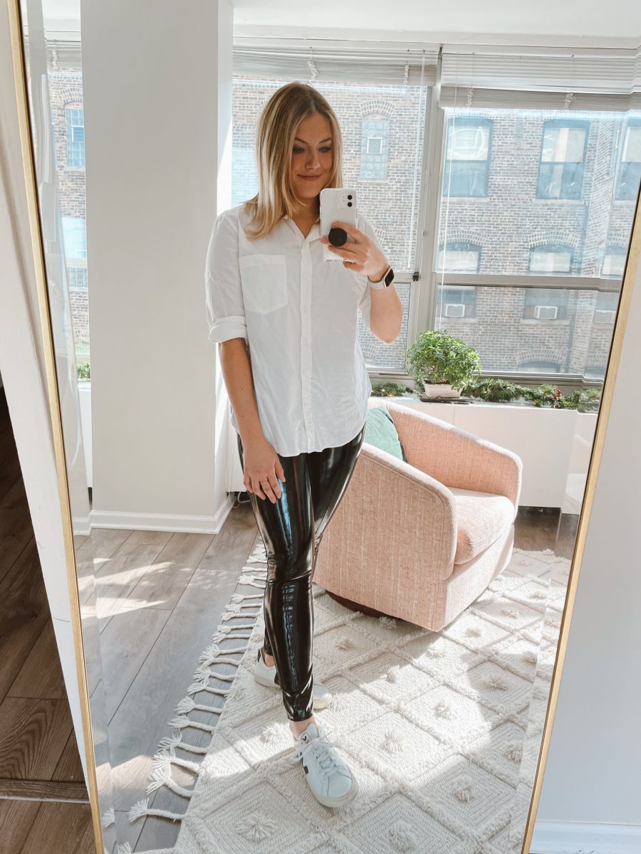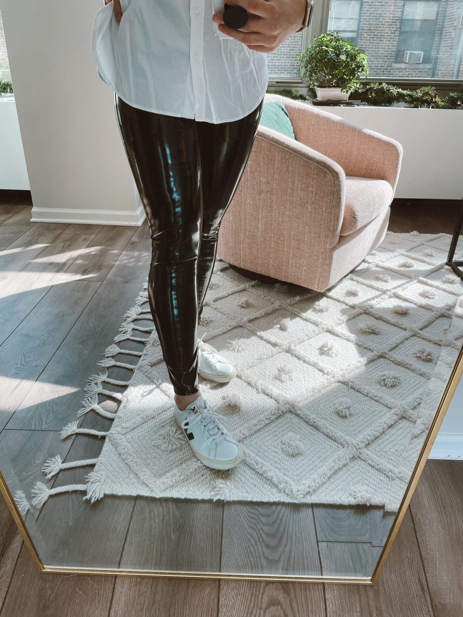 Les leggings en cuir Spanx sont un investissement, mais que j’ai trouvé rentable en coût par usure – je ne pourrais vraiment pas porter le mien plus, et ils sont toujours en parfait état après 18 mois de les avoir. À cause de cela, je suis si heureux d’ajouter cette pièce en quelque sorte d’un investissement dans ma garde-robe aussi. Si vous m’aviez dit début 2020 que je porterais un pantalon en cuir en travaillant à domicile, je ne vous aurais pas cru, mais ce n’est pas la chose la plus surprenante de l’année.
